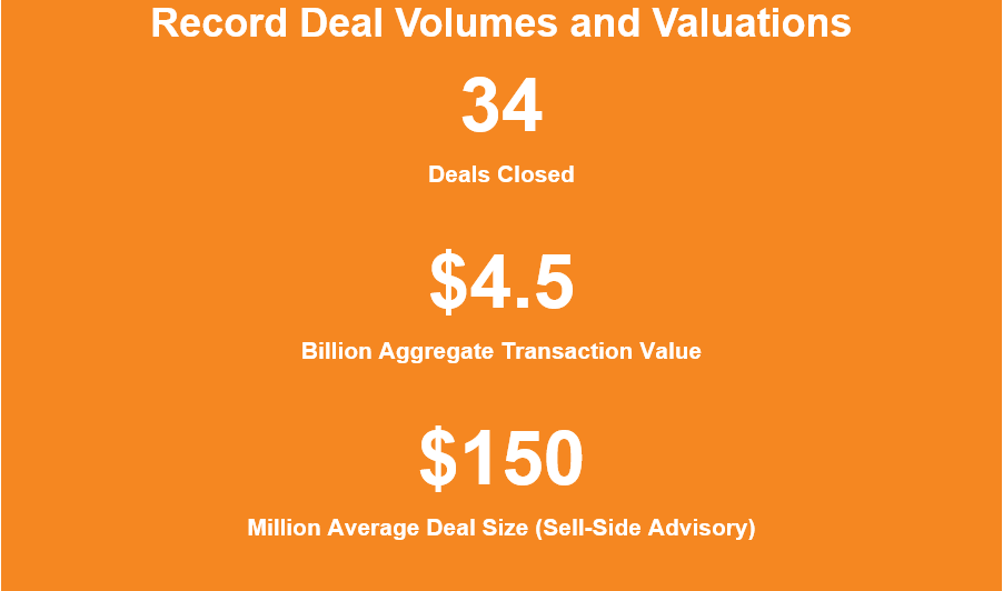 A year later, it is “déjà vu all over again.” 2021 shattered all prior records at Intrepid. Our team delivered big for our clients. Yet most remarkable were the obstacles we had to overcome to make it all happen—an unrelenting pandemic with new variants, the most competitive labor markets in decades, frozen supply chains and transportation logistics, and a surging number of sale mandates in the second half of the year motivated by unprecedented liquidity and the impending threat of rising tax rates.