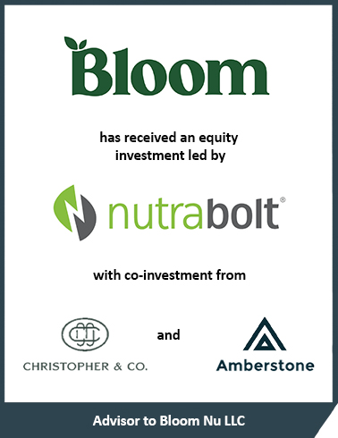 Intrepid Investment Bankers announced that it served as the exclusive financial advisor to Bloom Nutrition on its $90 million minority investment led by Nutrabolt with co-investment from Clayton Christopher Group and Amberstone. “We couldn’t be more pleased with the outcome and are excited to watch Bloom continue to thrive under the new partnership,” said Mike Garcia, Managing Director at Intrepid.