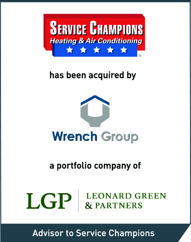 Intrepid announced today that it acted as the exclusive financial advisor to Service Champions North (Service Champions) on its sale to Wrench Group, LLC (Wrench), a portfolio company of Leonard Green & Partners, L.P. Founded in Pleasanton, Calif. in 2002, Service Champions quickly emerged as the leading provider of repair, maintenance and installation services for residential air conditioning and heating systems in the greater East Bay area of San Francisco. Service Champions’ emphasis on providing exceptional service to its customers enabled the company to rapidly gain market share and become a household name by consistently exceeding the expectations of the region’s homeowners.