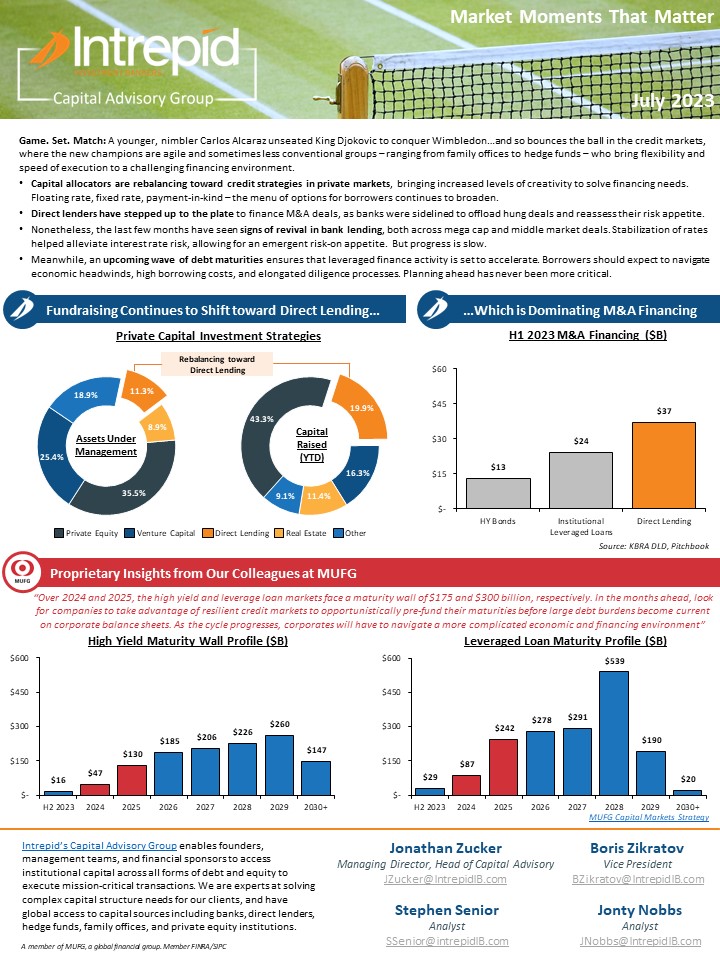 A younger, nimbler Carlos Alcaraz unseated King Djokovic to conquer Wimbledon…and so bounces the ball in the credit markets, where the new champions are agile groups who bring flexibility and speed of execution to a challenging financing environment.